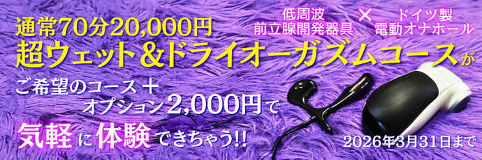 ☆超ウェット&ドライオーガズムを気軽に体験! 低周波前立腺器具×ドイツ製電動オナホールが2,000円でご体験いただけます! ぜひこの機会に未知の快楽をご体験ください!!