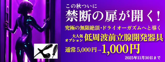 ☆低周波前立腺開発器具が超特価! ドライオーガズムへと導いてくれる低周波前立腺開発器具のオプションがお得!ご好評につき11月30日(日)迄延長!通常5,000円→特別価格1,000円でご体験いただけます。快楽にもだえてください!!